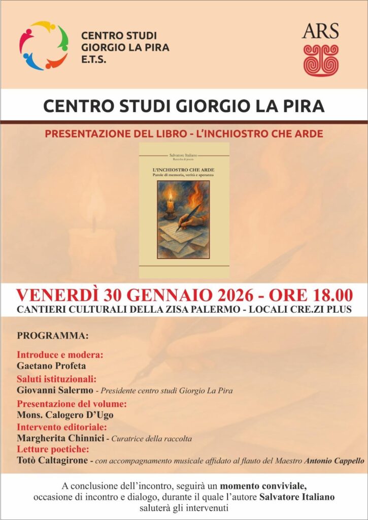 L'evento si svolgerà giorno 30 Gennaio 2026 alle ore 18:00 presso i Cantieri Culturali della Zisa Palermo.